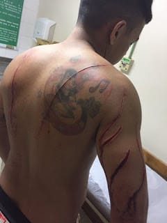 Depois disso, o jornalista foi até a Beneficência Portuguesa, de Belém, e levou 120 pontos no braço e nas costas. Apesar dos ferimentos, Diogo disse estar bem, pois deixou o hospital no mesmo dia.